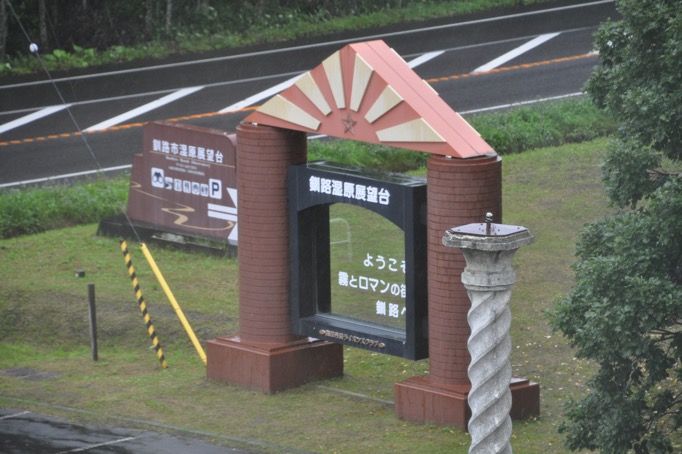 空港から釧路湿原展望台への移動中に雨風がどんどん勢力を増してきた。